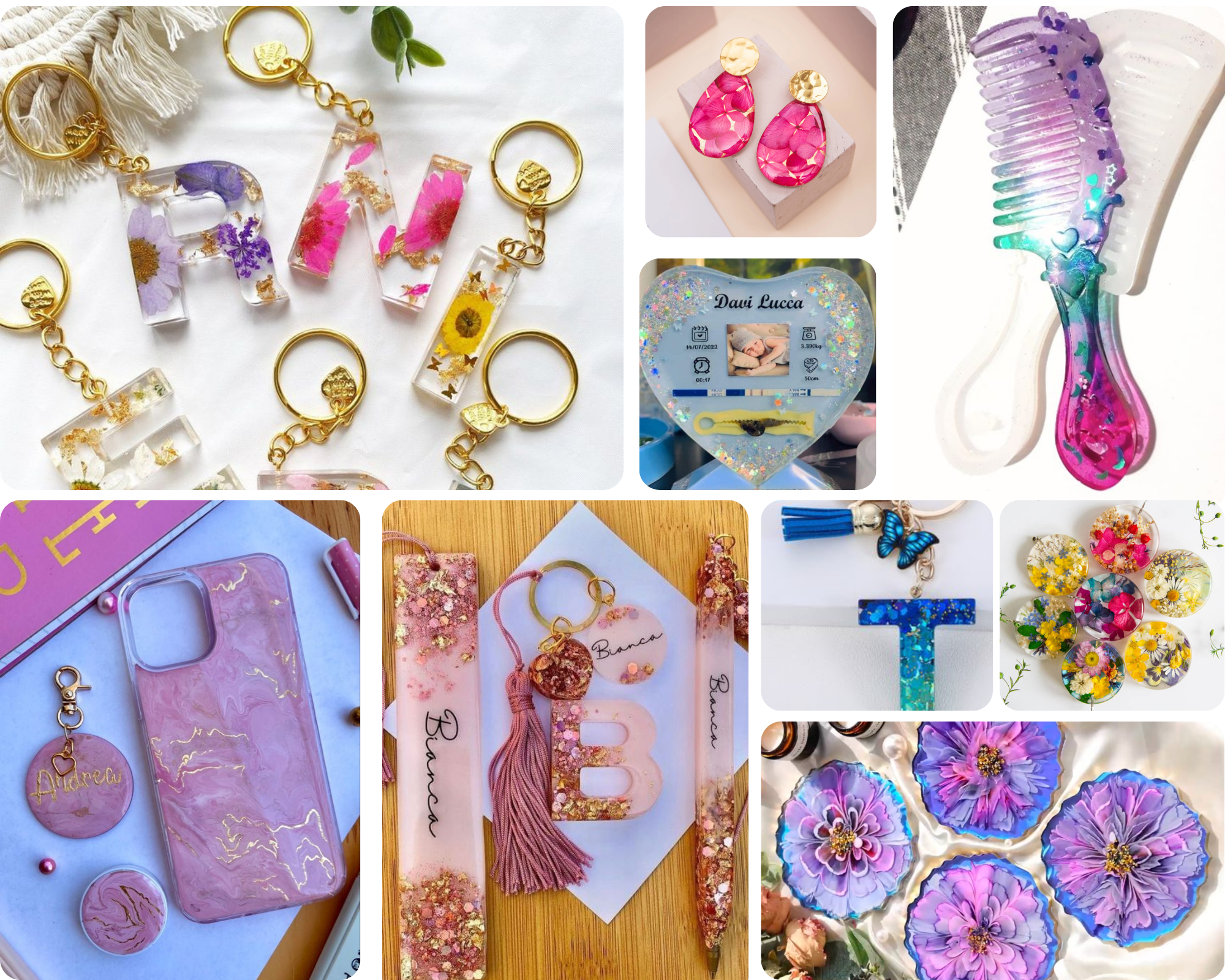 🌟La producción de productos en resina como: Llaveros, placas de mascota, peines, lapiceros, fundas de telefono, lámparas, recordatorios, joyería y mucho más.